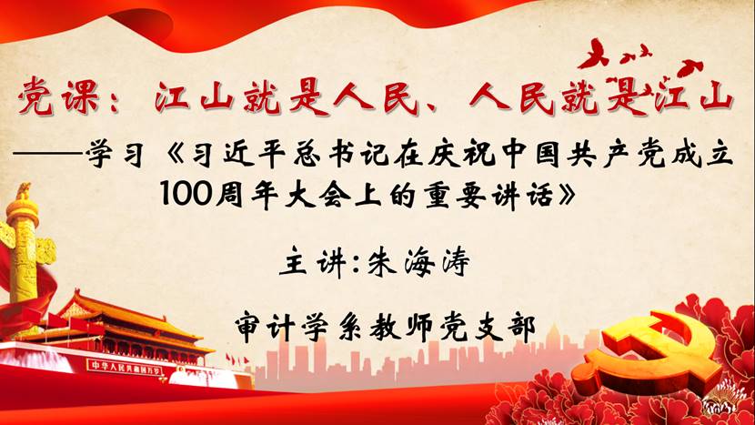 其次,支部书记朱海涛以“江山就是人民、人民就是江山”为题讲授专题党课,带领大家学习习近平总书记在庆祝中国共产党成立100周年大会上的重要讲话。习近平总书记在讲话中强调,江山就是人民、人民就是江山,打江山、守江山,守的是人民的心。中国共产党根基在人民、血脉在人民、力量在人民。中国共产党始终代表最广大人民根本利益,与人民休戚与共、生死相依,没有任何自己特殊的利益,从来不代表任何利益集团、任何权势团体、任何特权阶层的利益。任何想把中国共产党同中国人民分割开来、对立起来的企图,都是绝不会得逞的!9500多万中国共产党人不答应!14亿多中国人民也不答应!