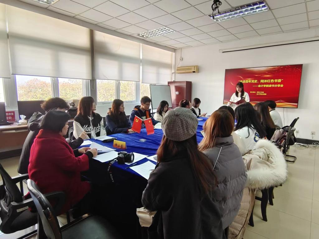 承载着烽烟战火的记忆的《红色家书》、展现了中国人民长达14年的抗战心灵史的《抗战家书》、引发读者对中国未来发展方向思索的《大国战略》......分享会上,11名学生代表从不同角度分享了自己读过的党史故事、红色经典书籍,并结合生活实际畅谈感悟和体会,诉说自己的家国情怀。他们的分享各具特色,或慷慨激昂,催人奋进,或娓娓道来,引人入胜。通过分享个人所得,聆听他人所感,同学们对百年党史有了更深刻、更全面的认识。“读《红色家书》,便是读史,便是重温党在艰难岁月中走过的昨天,感悟共产党员相继不忘的使命与从未蒙尘的初心,让我擦亮了信仰,明确了担当,鼓足了力量,坚定不移地为国家发展贡献个人力量。”会计2003班的丁雨萌同学在分享会上如是说道。