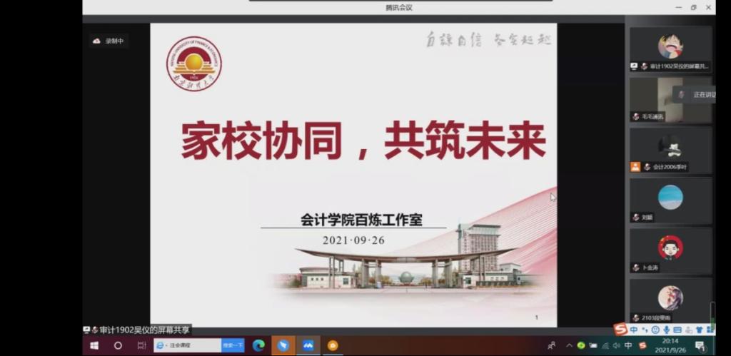 2021年9月26日晚,百炼工作室召开“家校协同,共筑未来”线上会议。2021级全体新生、新生家长、新生辅导员参加会议。会议由百炼工作室负责人仲小晶老师主持。