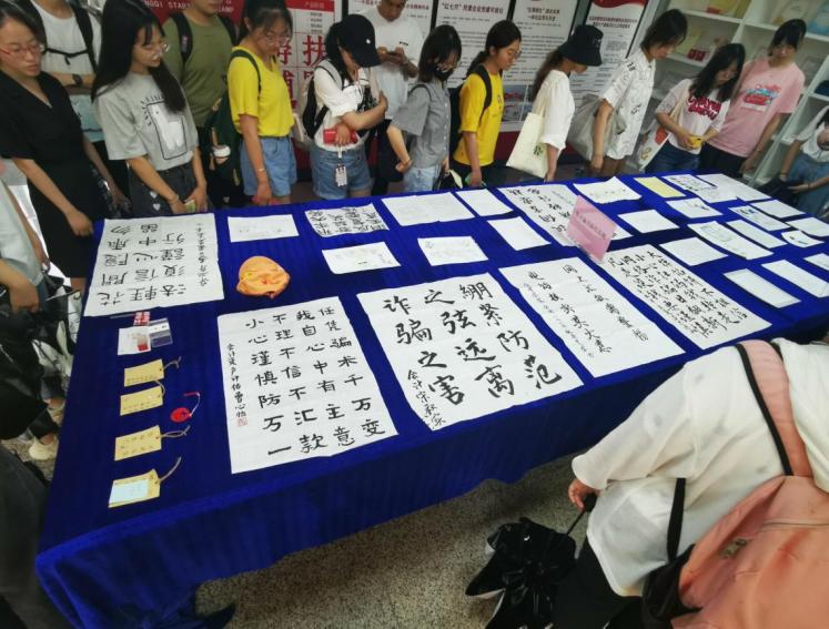 此次活动面向全院师生,以各年级、团支部为单位,开展形式多样的防诈宣传活动。学院分团委学生会发起的“防范电信诈骗作品征集大赛”得到了全院学生的积极响应,共收集防诈骗书画作品44幅,文学创作52篇,文创作品9项,摄影作品12幅,配音作品15个。学院对作品进行分类整理,遴选出优秀作品进行线上线下的展览。同学们或借丹青托物言志,或凭书法挥斥方遒,或通过创新文创发人深省,以不同的形式把防诈骗的知识传递给同学和朋友。