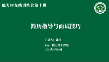 为提高学生就业竞争力,培育青年人能力之树,提升毕业生就业高质量,欢迎光临888集团开展能力树职业能力线上系列培训,邀请多位知名讲师进行专题讲座,本次系列培训由能力树训练营团队总负责。