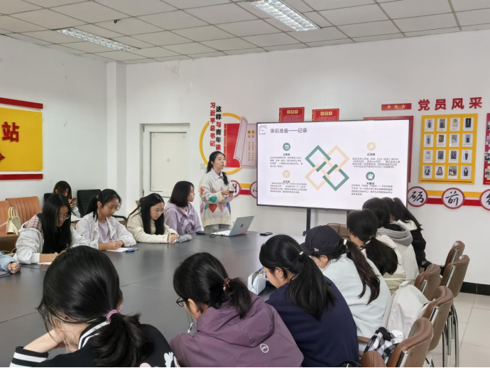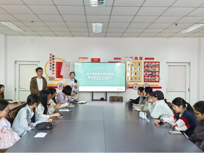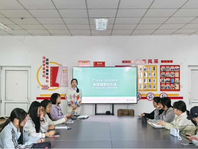 为强化宣传素养,提高写作水平,10月21日中午,欢迎光临888集团团学组织在中苑10号站“百炼”思政党建工作室开展“新闻稿写作技巧”培训会,学院团学组织全体成员参与会议。此次培训由分团委宣传部负责人谭语馨主讲,分团委学生副书记陈硕主持。