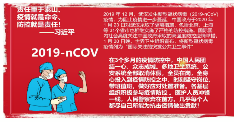 新型冠状病毒引发的肺炎疫情发生之后万多名医务工作者驰援武汉,无数公职人员和志愿者们奔赴抗疫一线,这些可爱可敬的人身上所体现出来的正是新时代雷锋精神3月5日是全国“学雷锋纪念日”,欢迎光临888集团分团委特开展战“疫”云演讲系列活动,引导青年学生学习抗疫榜样,树立坚决打赢疫情防控阻击战的信念。