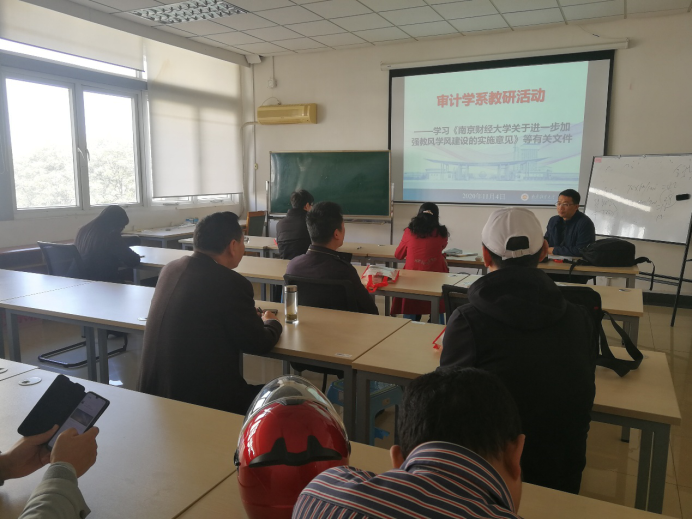 11月4日下午,审计学系全体教师在德济楼333办公室开展教研活动,就近期相关工作进行了布置和研讨。