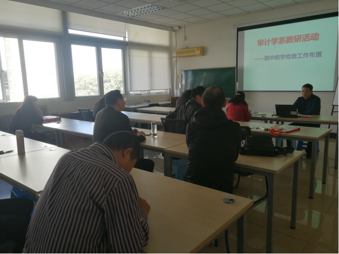 首先,审计学系主任朱海涛老师布置了将于第9周至第10周进行的期中教学检查工作,确定了审计学系公开课为郑军老师的《内部控制审计》(11月9日第2节,博文楼JA202,审计1802),说明了学校期中教学检查的其他要求。