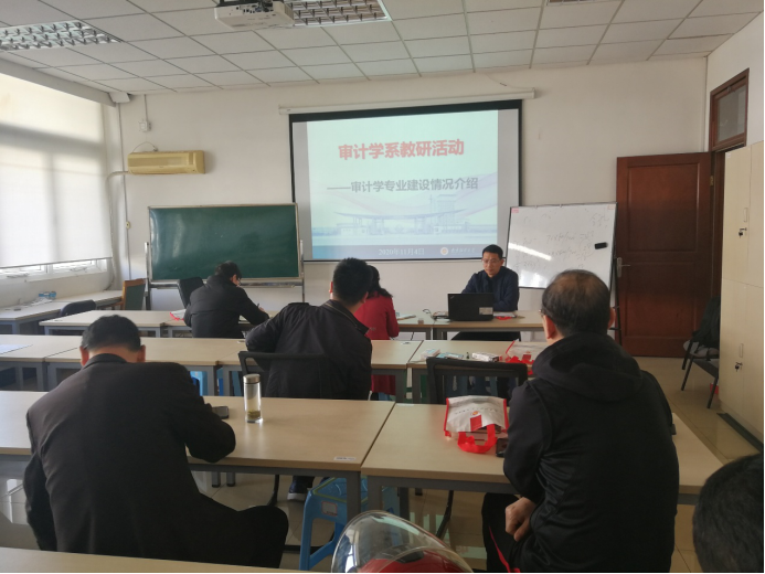接着,朱海涛老师就审计学专业近期的相关工作进展进行了说明。审计实训系统已经升级完成,新的实训系统更新了相关内容,版面更加生动美观,增加师生互动功能。审计学专业申报国家级一流本科专业建设点已经通过省级一流本科专业公示,正在冲刺国家级一流本科专业。