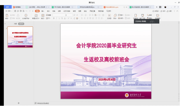 在我院2020届研究生毕业返校之际,6月30日中午12:30毕业班辅导员郭瑞霞、曹学舟利用腾讯会议召开了毕业研究生返校离校班会,全体2020届毕业研究生参加了此次会议。