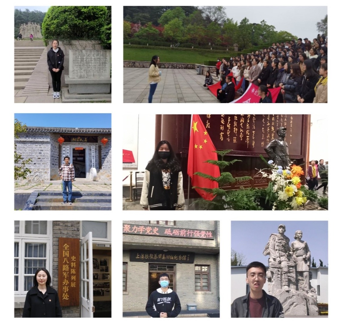 “党的历史不只是停留在文字里,更需要我们迈出脚步,亲自踏上那片红色土地,用心体会先辈们曾经的足迹。”入党积极分子端梦真同学在新四军第一支队司令部旧址记录着自己的“打卡”感受;学生党员张晓鸽在参观雨花台烈士陵园时,在丁香同志的纪念处郑重献上一束丁香花,“今天的幸福生活是先烈们用生命和鲜血换来的,缅怀,致敬!”;“钟山风雨起苍黄,百万雄师过大江。虎踞龙盘今胜昔,天翻地覆慨而慷。”教师党员钱坤在渡江战役纪念馆前慷慨朗诵毛主席于一九四九年四月在南京所作诗词。