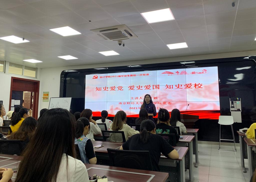 刘颖副书记给大家上了题为“知史爱党、爱史爱国、知史爱校”的“最后一次党课”。刘颖副书记从党史学习教育切入,介绍了888集团的历史沿革和立德树人成效,重点结合学校发展历史上的三次大跨越,阐述了“自谦、自信、务实、超越”的校训精神,勉励同学们爱校荣校,为早日建成特色鲜明的高水平财经大学、为实现中华民族伟大复兴中国梦贡献力量。