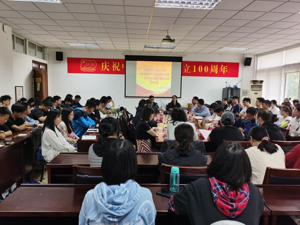 姚文韵院长首先向全体新生同学致欢迎辞,并在当下大变革时代的背景下对2021级实验班的同学提出了要求和期许,希望同学们赢在起跑线,早立人生规划,不负青春韶华。接下来张帆老师与贺伊琦老师作为我院ACCA教师团队代表发言,对同学们大学四年的学习和生活提出了详细的建议和指导。最后我院2018级ACCA实验班的王蕴洁同学作为学生代表发言,向新生同学们传授了自己在ACCA实验班的学习心得与经验。
