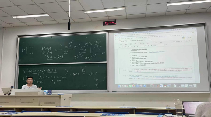 本次系列讲座以引导广大同学接触编程、建立信心、夯实基础为目标,共计举办5场,每次4课时,由会计学院薛利兴、李行云两位老师主讲,首先梳理和总结了Python基础知识,如Python的基本语法、程序设计的控制结构、常用数据类型的使用与类型转换、函数与代码复用、Python模块与扩展体系、以及常见网络爬虫的使用,在此基础上进一步围绕爬虫实战与文本分析这两个人工智能技术详细讲解。薛利兴老师以其扎实的理论功底和实践经验为同学们耐心地讲解Python的基础知识和各种心得,李行云老师则侧重讲授使用Python Requests库、BeautifulSoup库、Pyquery库等爬虫相关库的使用、Ajax网页加载类型网站爬取等爬虫技术进行数据抓取以及文本分许在经管类学科应用;二位老师一直鼓励同学们多思考、多动手、多练习,引导同学们在实践中发现问题、解决问题,为进一步的数据分析与处理打下坚实的基础。讲座现场气氛活跃,参加讲座的本科生和研究生同学们对Python编程兴趣浓厚,表示收获满满。