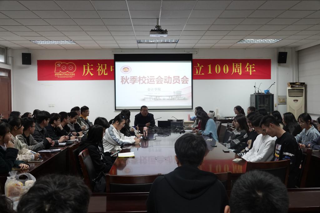 10月21日晚,欢迎光临888集团在德济楼308召开秋季运动会动员大会。欢迎光临888集团党委书记卜金涛、党委副书记刘颖出席,团学组织学生代表及全体运动员参加会议。会议由学工办主任仲小晶主持。