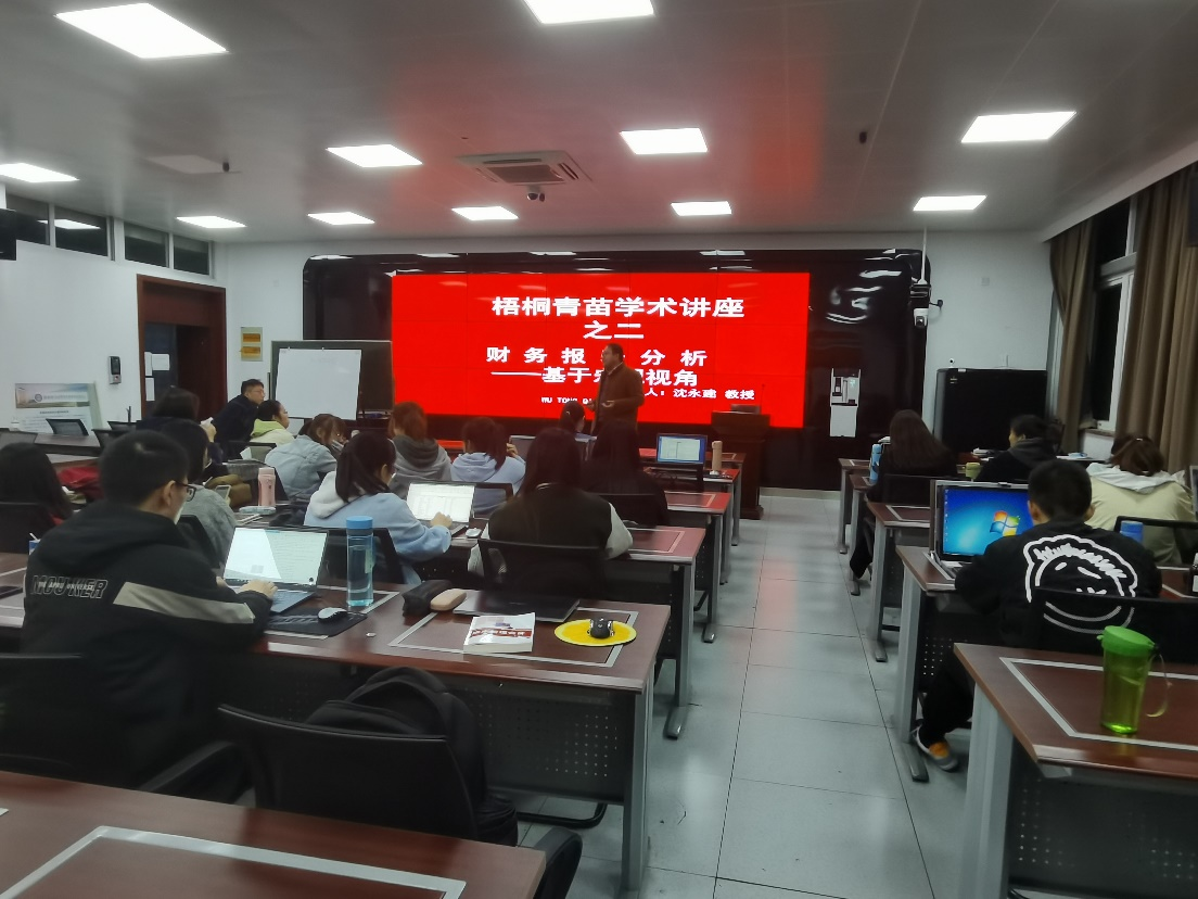 11月12日晚18:30~20:30,欢迎光临888集团在专二S209举办了第二期“梧桐青苗”学术训练营讲座之二——广义财务报表分析,本次讲座由欢迎光临888集团沈永建教授主讲,线上线下同时进行,欢迎光临888集团众多本科生及研究生参加了此次学术训练营讲座。
