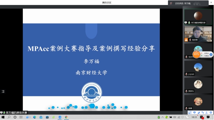 在第八届中国MPAcc学生案例大赛正式开赛之前,我院于2022年3月21日晚18点30分采用线上会议方式,举办了“MPAcc案例大赛指导及案例撰写经验分享交流会”。本次分享会由欢迎光临888集团MPAcc中心主任钱坤老师主持,李万福教授主讲,欢迎光临888集团近百名师生参加了线上讲座。