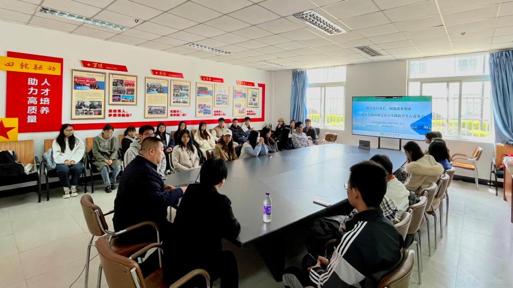 卜书记以“助力迭代成长,赋能就业创业”为主题,以能力树训练营为例介绍了大学生如何通过社会实践提升个人竞争力。能力树训练营以“实践育人”为核心,聚焦大学生职业通用能力,依托学院党建联盟工作机制建立的社会实践基地,设计开发了职业实践、创业实践、公益实践、劳动实践四大类型的社会实践活动;通过“训行践用”实践育人工作法,有效解决大学生脱离实践、缺乏快速融入现代职场的能力、缺乏社会竞争力等现实问题。青年创业典型瑟琳格也跟大家进行了面对面的创业分享与交流。