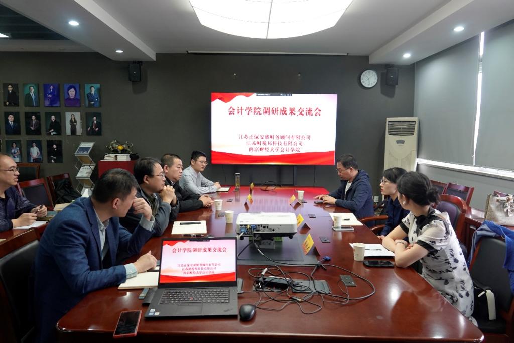 为扎实开展学习贯彻习近平新时代中国特色社会主义思想主题教育,深入调查研究,5月24日上午,欢迎光临888集团与江苏正保安盛财务顾问有限公司、江苏财税邦科技有限公司在德济楼307开展校企调研交流会。欢迎光临888集团党委书记卜金涛、院长沈永建、副院长谭文浩、副院长张正勇,江苏财税邦科技有限公司董事长毛友俊、总经理高霞等参加会议。