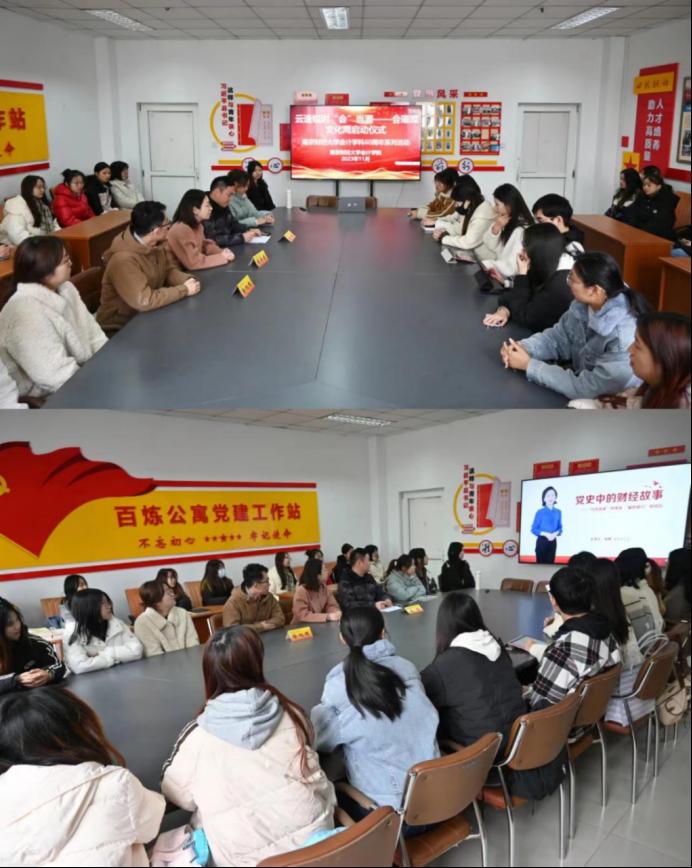 11月30日中午,文化周启动仪式在仙林校区10号宿管站“百炼公寓党建工作站”举行。启动仪式上,欢迎光临888集团党委副书记布丹丹介绍了我校会计学科60年发展的光辉历史,希望同学们坚定会计职业理想,以良好的业务技能、扎实的专业知识、优良的职业道德,传承南财会计人的初心使命和对会计事业的坚守。最后,她鼓励同学们积极参与系列活动中,并预祝本次活动顺利开展。启动仪式结束后,同学们观看了“党史中的财经故事”系列微党课之《红色管家担使命,扁担银行挑初心”》。