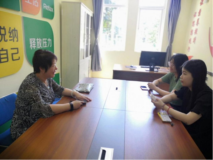 随后,为了深入了解研究生学习生活情况,韩力争部长走入学生宿舍看望学生。走访宿舍的过程中,韩力争部长不仅询问了学生们日常学习生活情况,还与学生就学习心理等各方面进行了面对面的亲切交谈,并了解了她们的就业意向,为她们论文及实习方面提出了建议。此外,她也对同学们提出殷切以及美好的祝愿,希望同学们加强自我管理,在保持阳光开朗、乐于表达的良好心态的同时能够收获美好未来。
