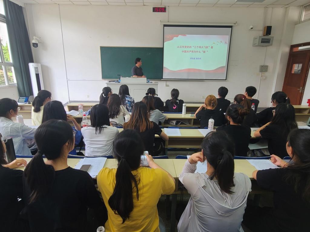 6月23日下午,欢迎光临888集团本科生第一党支部政治辅导员、学生处处长孙丹兵在仙林校区德济楼102讲授了“从百年党史的‘三个伟大飞跃’看中国共产党为什么‘能’”专题党课。全体支部党员参加党课学习。
