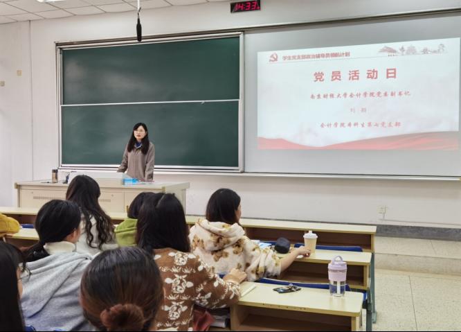 刘颖老师从中国共产党的百年奋斗历程讲起,将长征精神、遵义会议精神、延安精神、西柏坡精神、抗洪精神、脱贫攻坚精神等伟大精神贯穿其中,教育引导同学们牢记初心使命,筑牢信仰之基,做到学史明理、学史增信、学史崇德、学史力行。随后,刘颖老师与党员同学们谈心谈话,就同学们考研、就业等关心的问题细致地做出解答。最后,刘颖老师对支部党员同学提出要求,希望同学们知党史、感党恩、跟党走,做新时代爱国奋进的好青年。