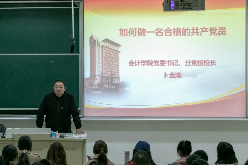 在随后的“如何做一名合格的共产党员”课上,主讲人卜书记从三个方面阐述了如何做一名合格的共产党员。他指出,第一要充分认识到学习的重要性,除了学好专业课之外,还要认真学习党组织的历史、思想和党章政策,做到守正创新,时刻学习,保持党员的先进性;第二要注重意识形态的培养和表现,以党员的标准严格要求自己,保持良好的作风,具备正义感,时刻反思纠正自身缺点不足;第三,要积极行动起来,积极参与班级、学院、学校组织的各项活动,增强自己的实干能力,时刻保持党员的先进性,为祖国的事业发展添砖加瓦。