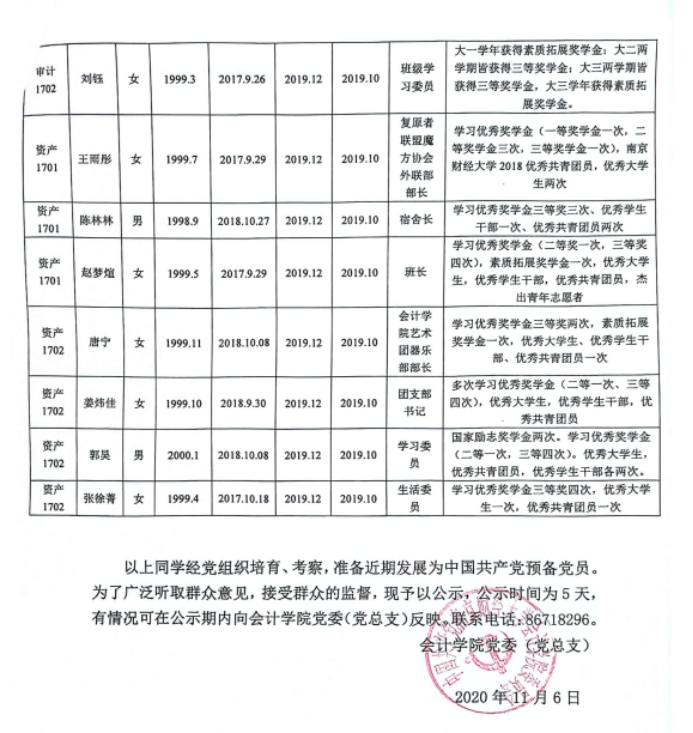 根据《中国共产党章程》和《中国共产党发展党员工作细则》,经支部审查、组织培训、答辩选拔,欢迎光临888集团党委认为以下45名同学已基本符合我校学生党员发展条件,拟近期发展,现予以公示。