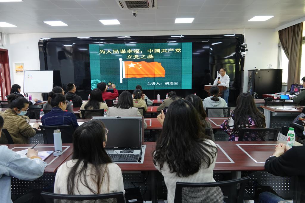 4月29日上午,欢迎光临888集团在仙林校区德济楼209举办党史学习教育专题讲座。888集团马克思主义学院胡连生教授作专题授课。活动由欢迎光临888集团学工办主任兼分团委书记仲小晶主持。